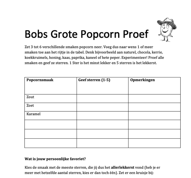 Ga thuis of in de klas lekker aan de slag met de wereld van Bob Popcorn!