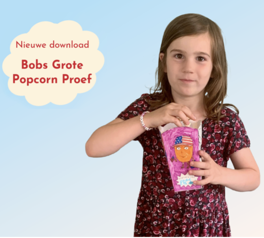 Organiseer een popcorn-proef-feestje! Download Bobs Grote Popcorn Proef (en eventueel het sjabloon om zelf Bob Popcorn bakjes te maken) en ga aan de slag. Deze smaaktest is superleuk voor thuis en op school.