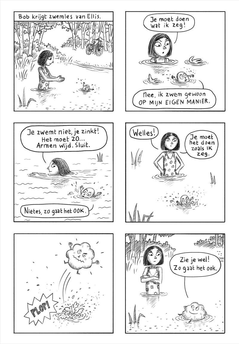 In het Bob Popcorn verzin- en tekenboek staan ook strips en korte verhaaltjes over Bob. Hieronder kun je vast zo'n stripverhaaltje bekijken. In het boek volgt na een stripverhaaltje nog een leuke opdracht waarbij je zelf ook iets gaat tekenen en/of schrijven.