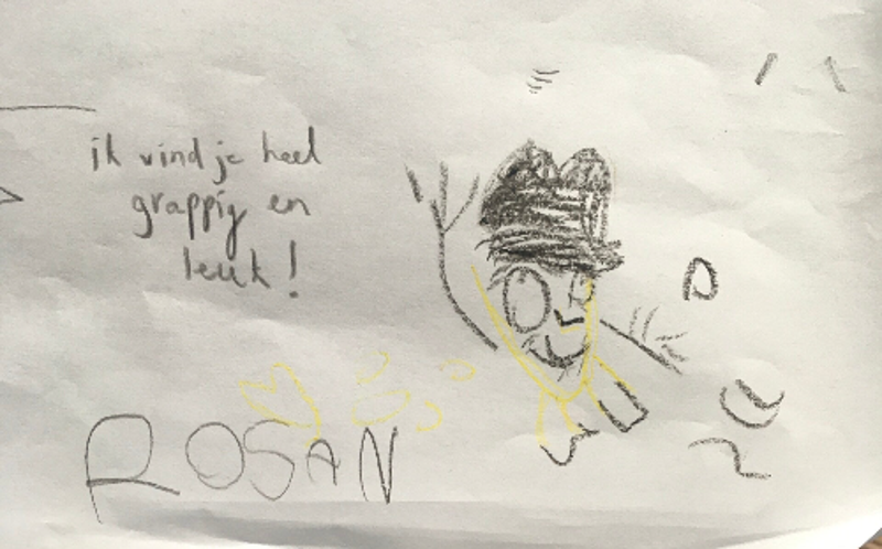 Rosan (6 jaar) maakt mooie tekeningen en vroeg: Hoe heb je leren koken? Hoe weet je hoe de oven werkt? En ik heb eigenlijk nog een vraag: vind je alles lekker, zijn er ook dingen die je niet lekker vindt?