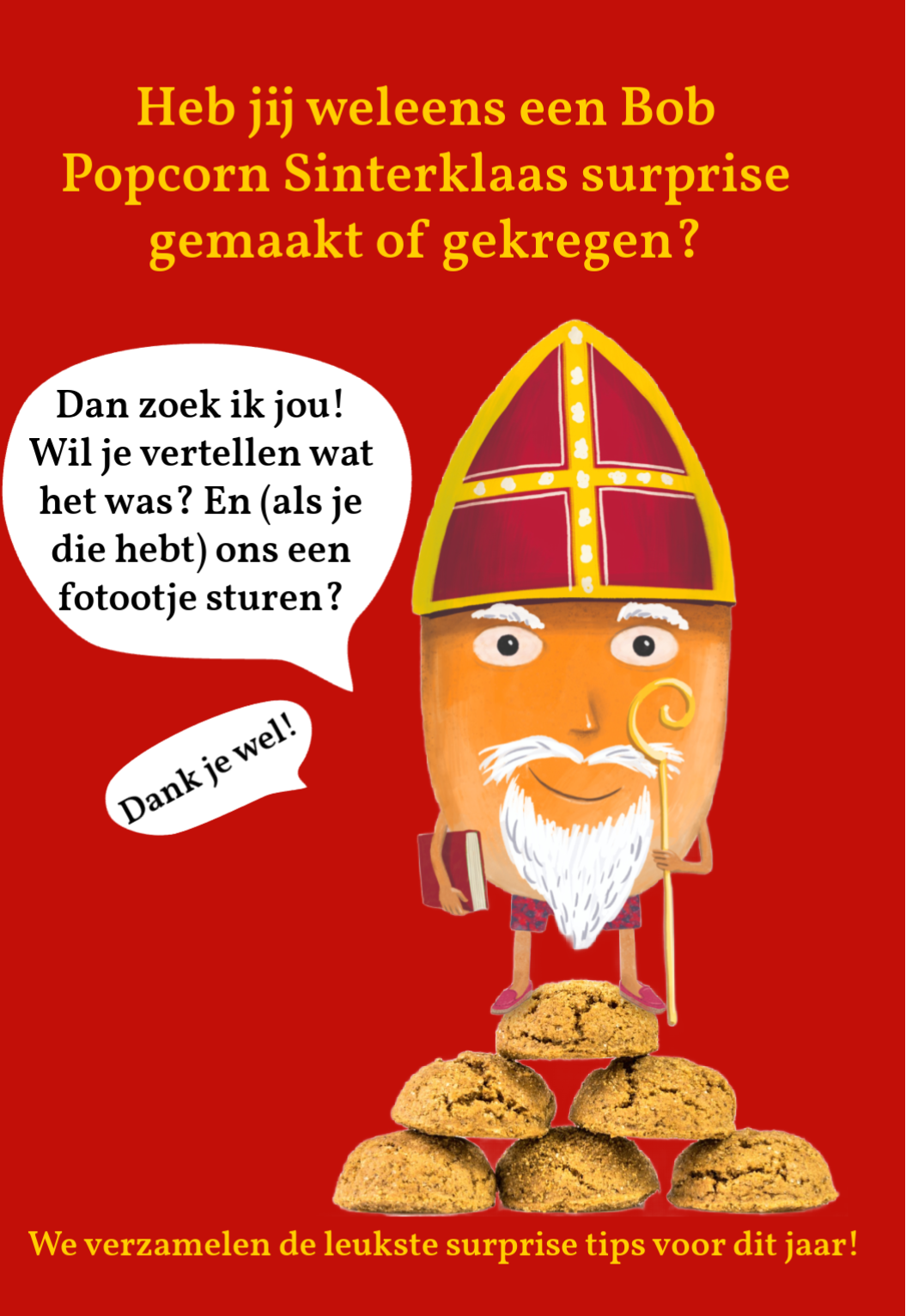 Heb jij weleens een surprise gemaakt voor een Bob Popcorn fan? Of heb je er zelf een gekregen? We zijn op zoek naar goeie popcorn-knutsel-ideeën. Heb jij een leuk voorbeeld? Laat het ons weten! Reageer hier of mail even!
