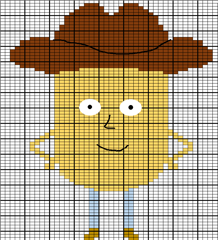 - Werk alles af met een zwarte geborduurde lijn. Ook de beentjes van de boze Bob moeten iets verder doorgeborduurd worden; in het lijfje dus.